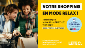 LETEC vous offre un ticket gratuit pour aller faire votre shopping à l’occasion du Weekend du Client !